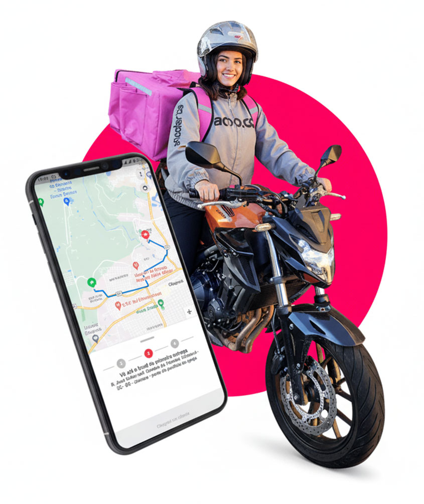 O app agiliza o dia a dia dos entregadores e maximiza o lucro do seu estabelecimento; com entregas seguras, rápidas e muuuito práticas.